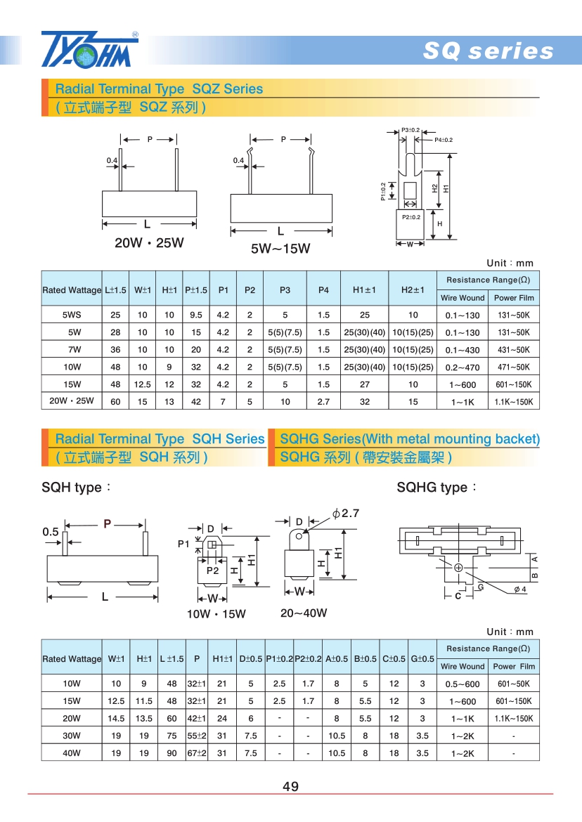 4、高電阻值采用金屬氧化皮膜體(MO)代替繞線方式制成。